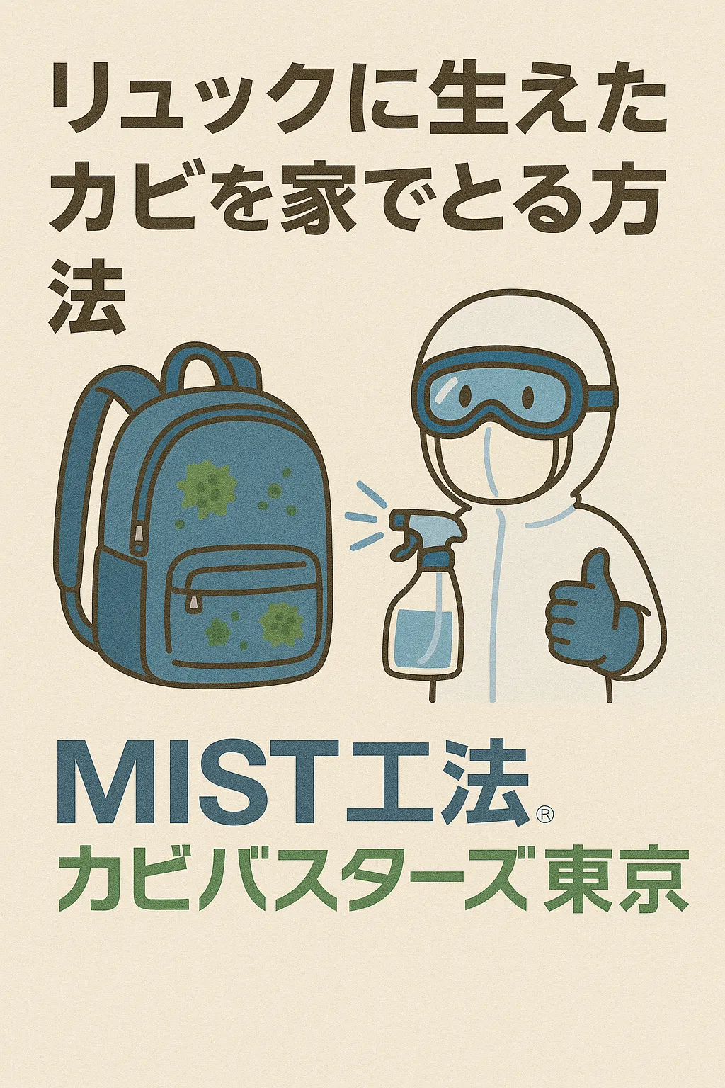 ただし、カビの種類によっては健康被害を引き起こすこともあるため、「自分で落とすのはちょっと不安…」「リュック以外の家具や部屋全体に広がってしまった」という場合は、早めに専門業者へ相談することをおすすめします。もしご家庭での対処が難しいと感じたら、ぜひ MIST工法®カビバスターズ東京 にご相談ください。私たちが皆さまの快適で安心できる生活をサポートいたします。✨