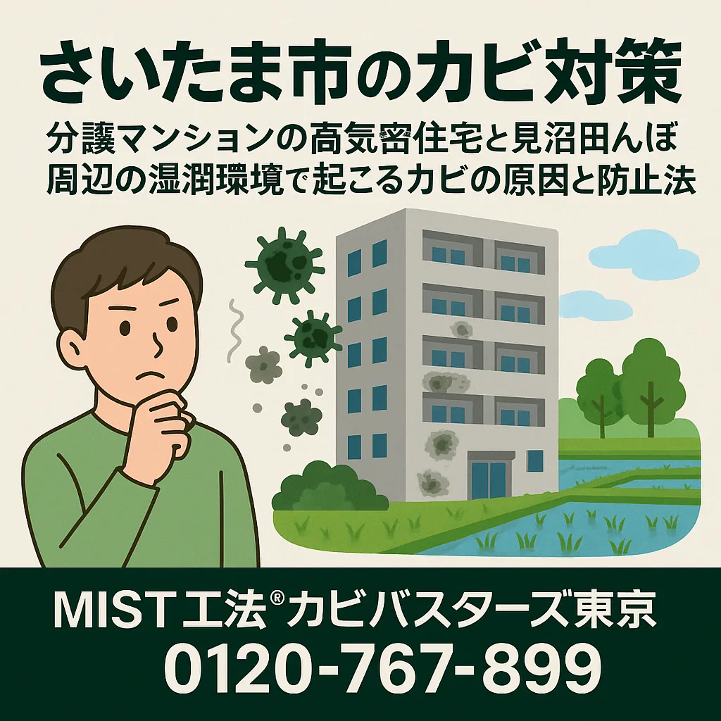 さいたま市のカビ対策|分譲マンションの高気密住宅と見沼田んぼ周辺の湿潤環境で起こるカビの原因と防止法