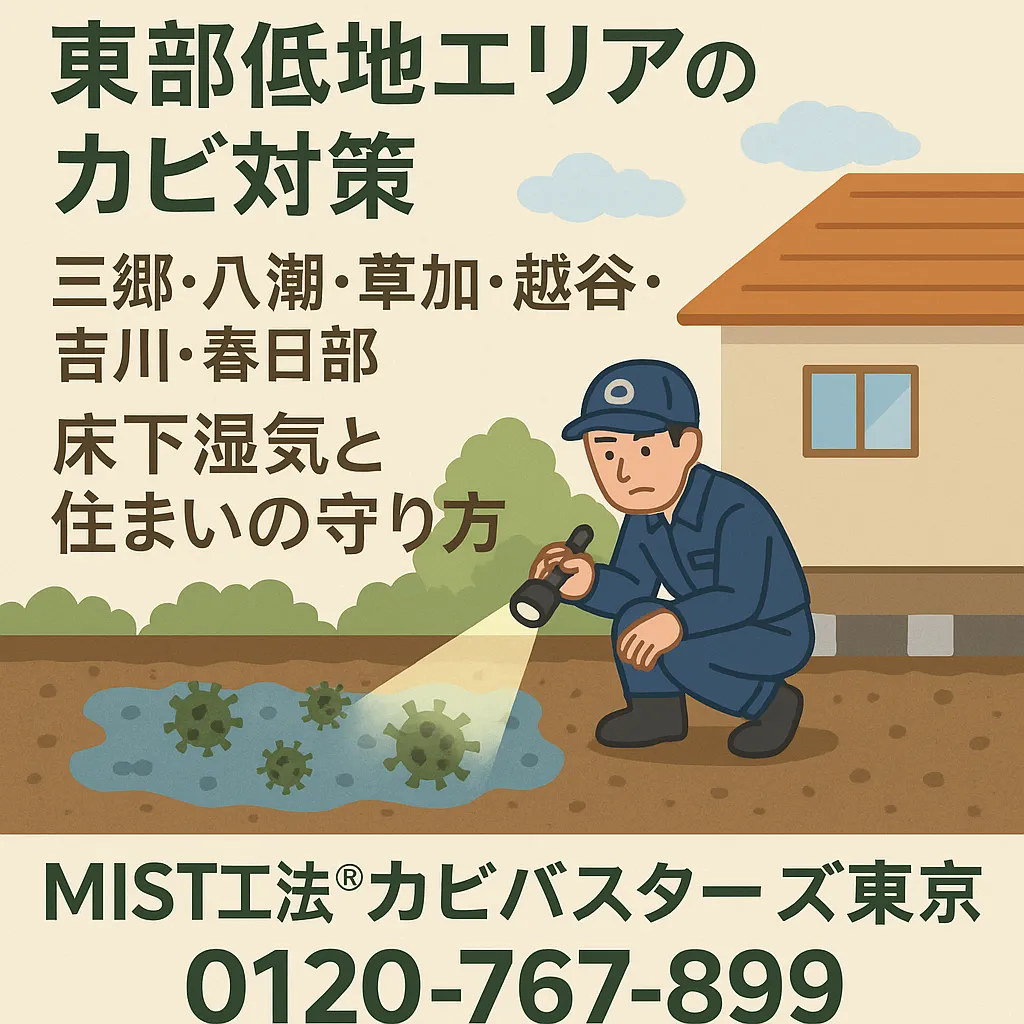 東部低地エリアのカビ対策|三郷・八潮・草加・越谷・吉川・春日部の床下湿気と住まいの守り方