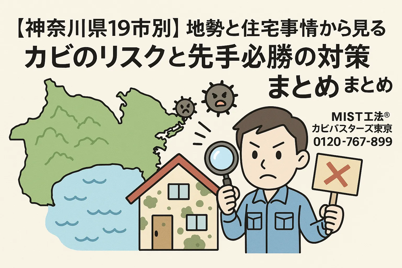 私たち MIST工法®カビバスターズ東京 は、神奈川県の気候・地勢・住宅事情を熟知しています。もしカビの悩みで困ったときは、ぜひお気軽にご相談ください。住まいと健康を守り、安心して暮らせる毎日をサポートするために、私たちは常にここにいます。