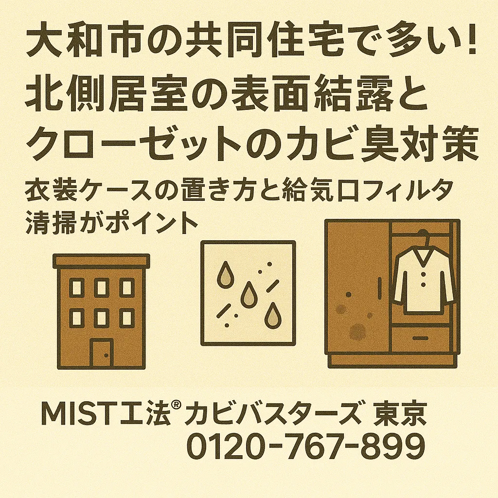 大和市の共同住宅でよく見られる「北側居室の結露」と「クローゼットのカビ臭」は、住宅環境や生活習慣が重なって起こる身近な問題です。ですが、
