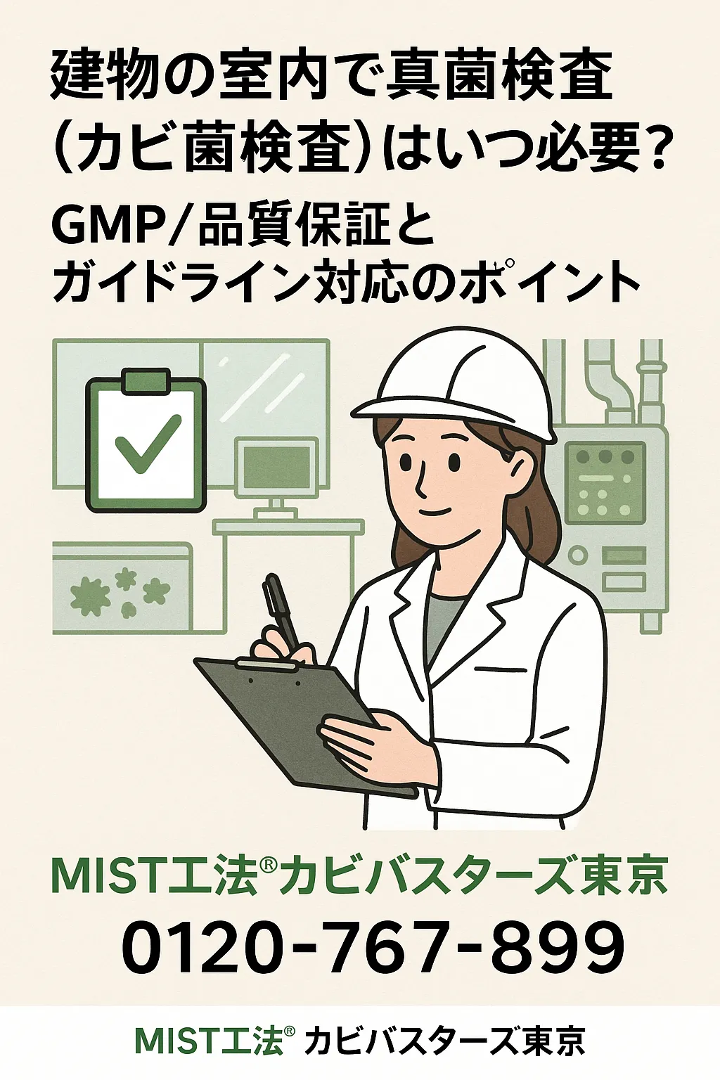 「検査計画をどう立てればよいのか不安…」「今のやり方で規制要件を満たしているのか確認したい」というときは、全国にあるMIST工法®カビバスターズにご相談ください😊。経験豊富なスタッフが、あなたの施設に合った最適な検査設計をお手伝いします✨。