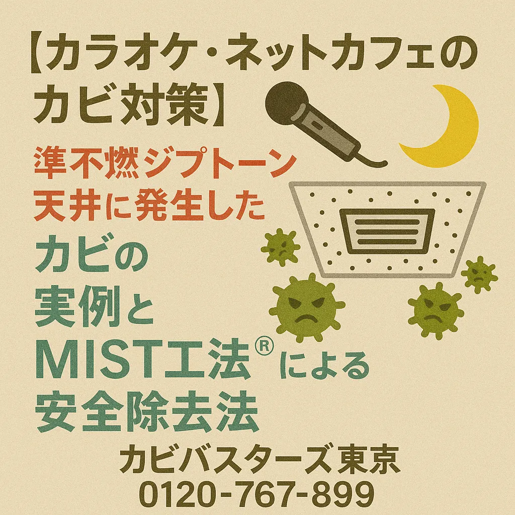 【カラオケ・ネットカフェのカビ対策】準不燃ジプトーン天井に発生したカビの実例とMIST工法®による安全除去法🎤🌙