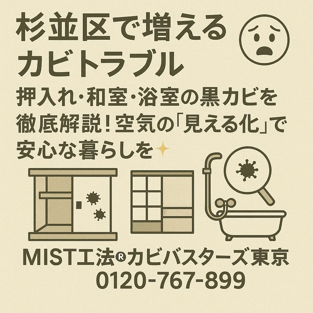 杉並区で増えるカビトラブル😱押入れ・和室・浴室の黒カビを徹底解説!空気の「見える化」で安心な暮らしを✨