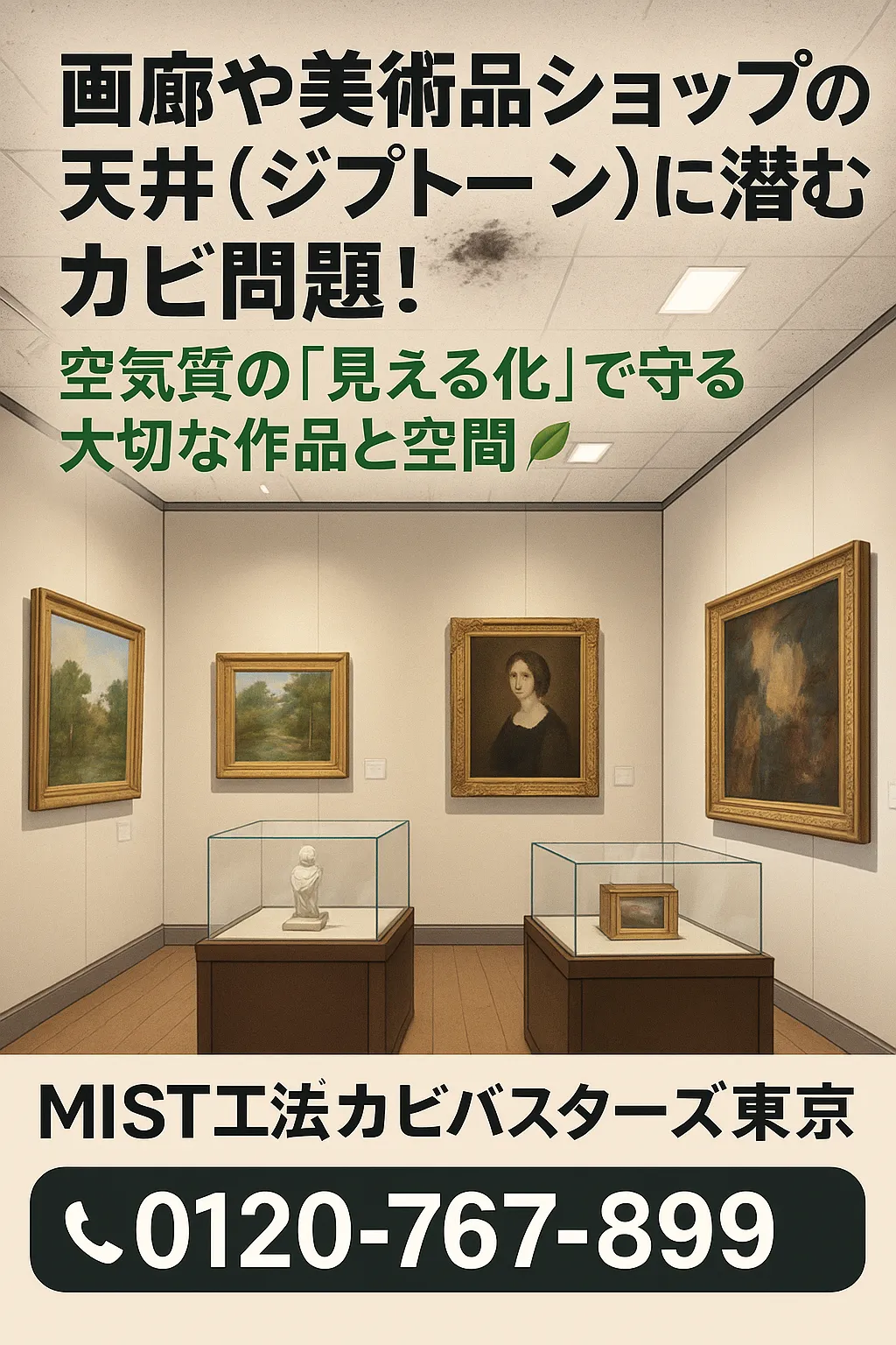 画廊や美術品ショップの天井(ジプトーン)に潜むカビ問題!空気質の「見える化」で守る大切な作品と空間🌿
