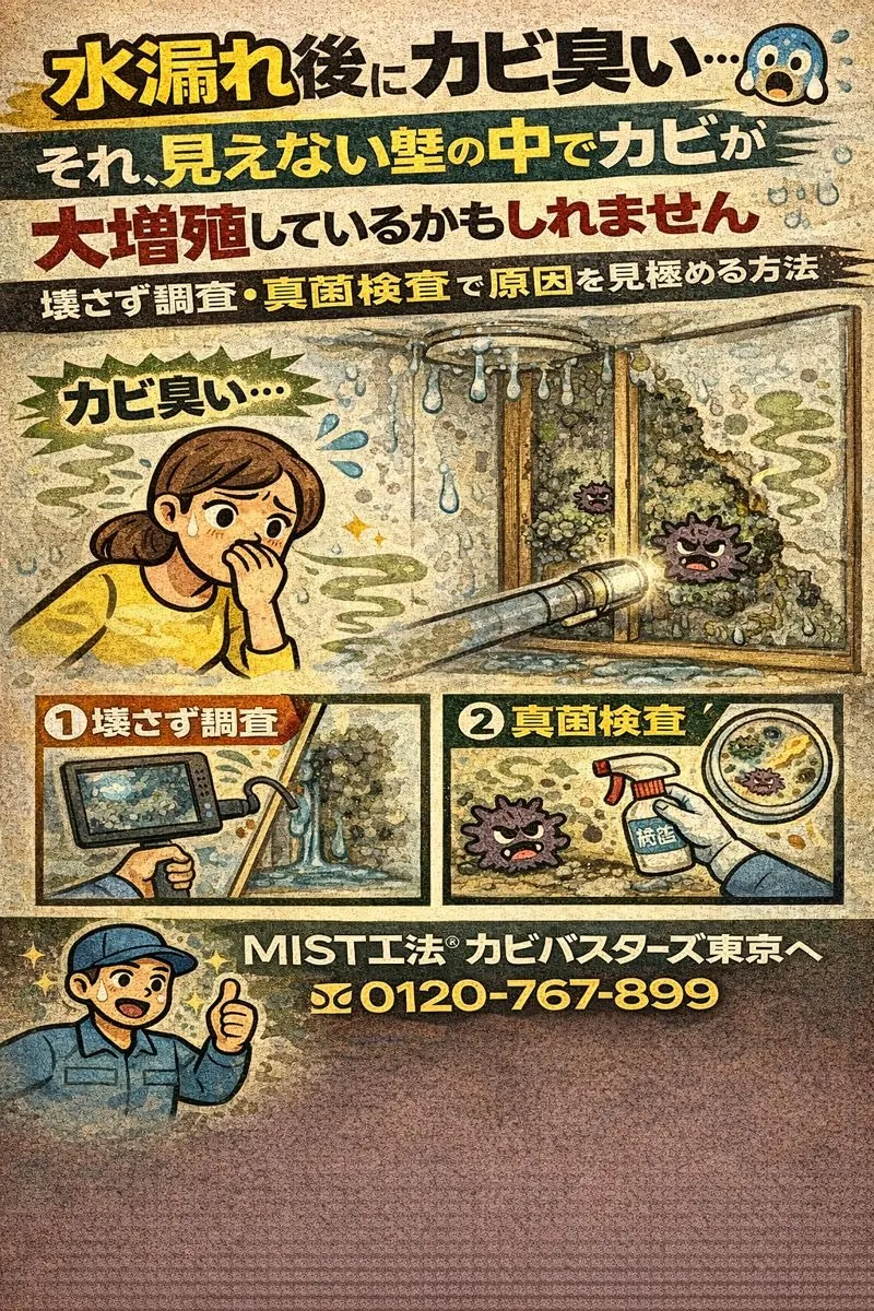 水漏れ後にカビ臭い…それ、見えない壁の中でカビが大増殖しているかもしれません|壊さず調査・真菌検査で原因を見極める方法