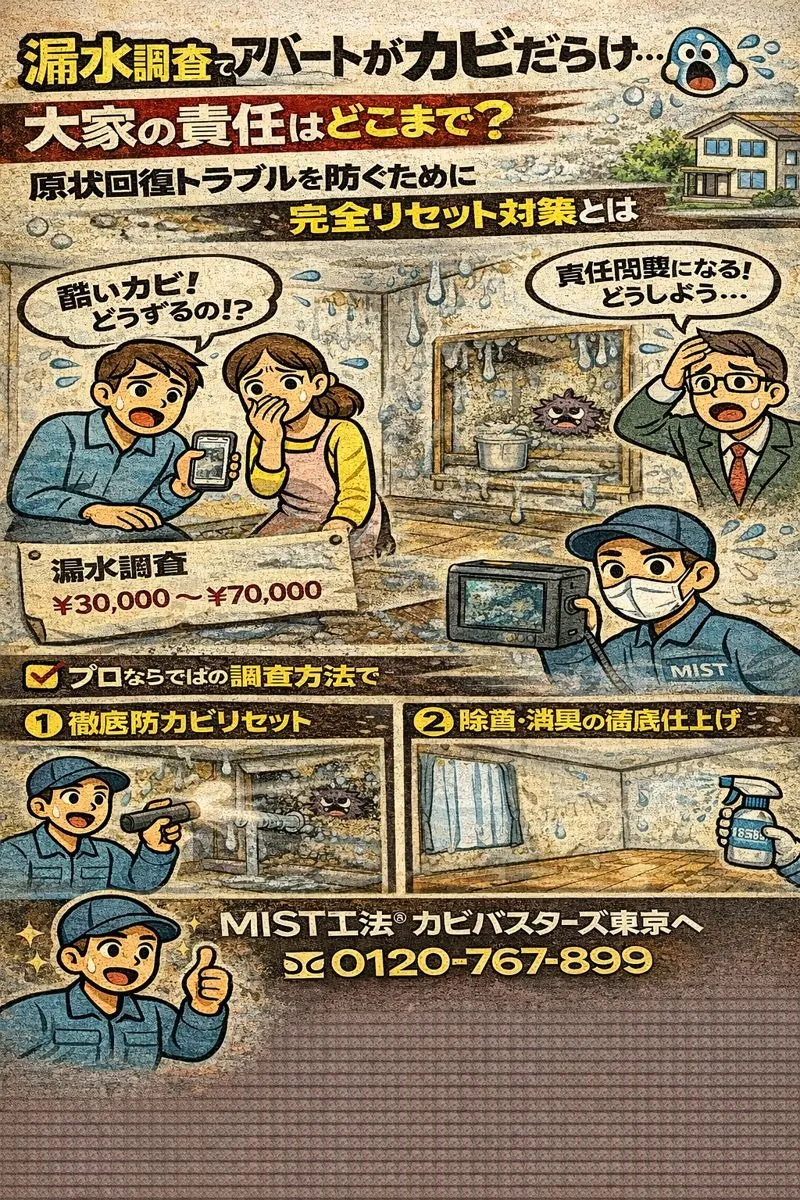 水漏れでアパートがカビだらけ…💦大家の責任はどこまで?原状回復トラブルを防ぐために知っておきたい完全リセット対策とは