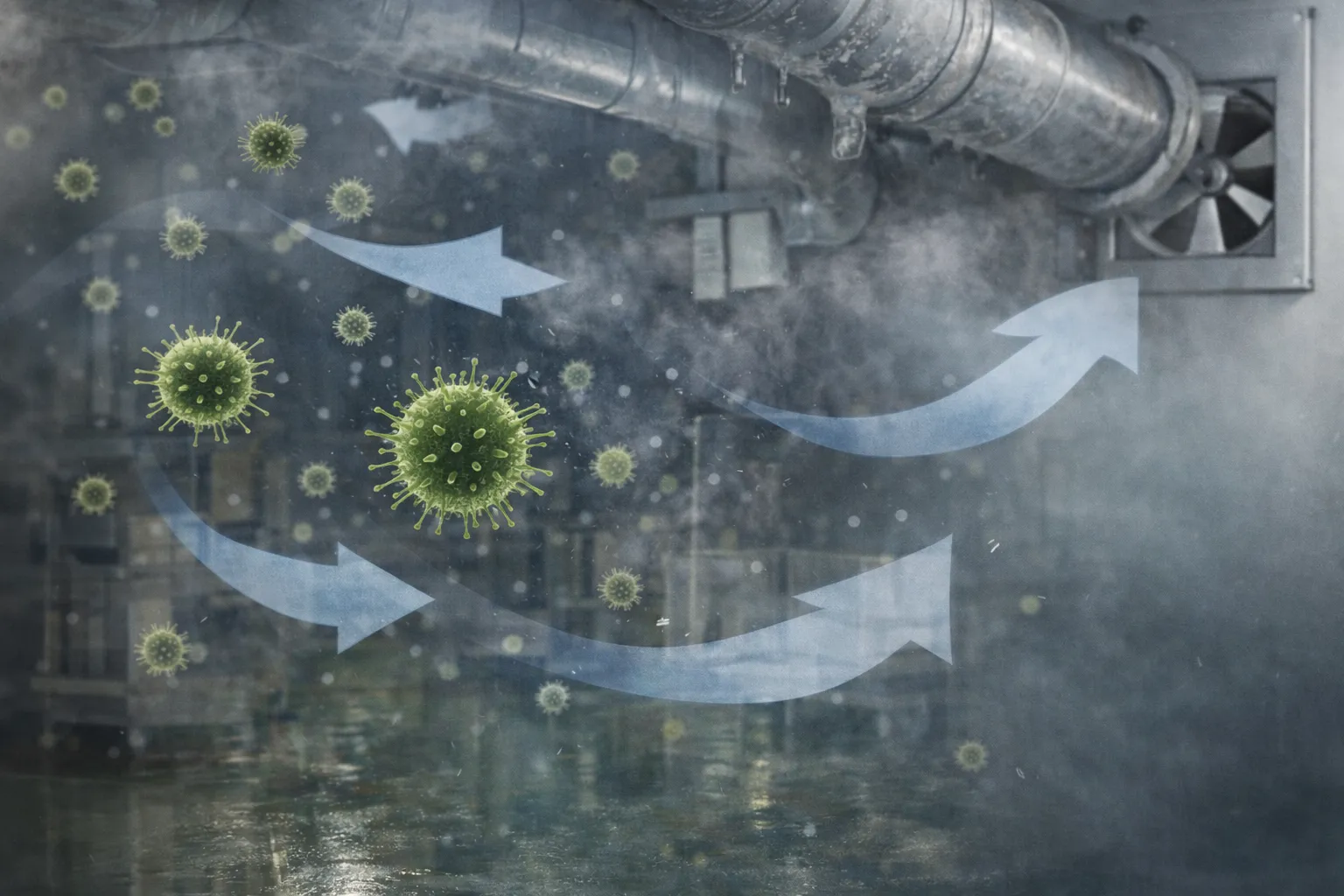 食品工場のカビ再発で見落とされがちなのが、空中を漂うカビ胞子の存在です。カビは目に見える状態になる前、すでに胞子として空気中に広く拡散しています。清掃で表面のカビを除去しても、空中環境が改善されていなければ、再び同じ場所に胞子が定着し、増殖を繰り返します。