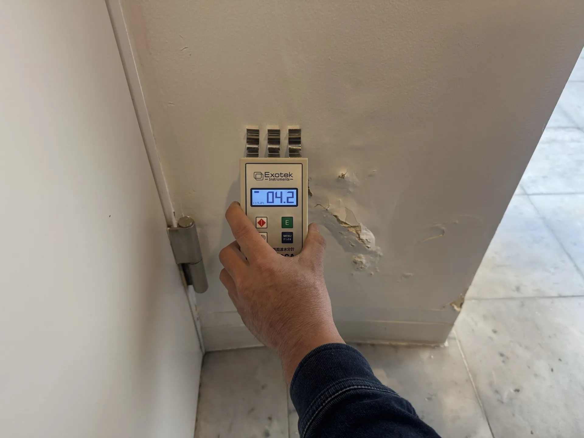 まずは、どこにどれだけのカビが発生しているか、含水計やサーモグラフィを使用して目に見えない水分分布を確認します。カビの種類や発生原因(雨漏り、結露、あるいは配管トラブルなど)を正確に特定することが、適切な対策の第一歩です。