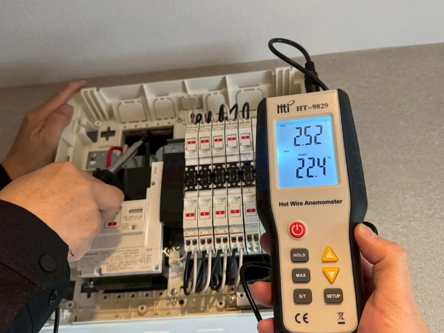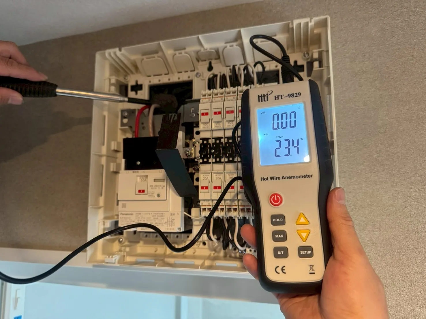 電気設備は感電や火災のリスクが伴うため、専門知識と資格がなければ安全な施工はできません。特に今回のように、配電盤やコンセント内部の気密処理や空気の流れの改善を行う場合、単なる「カビ業者」では対応できず、電気と建物構造の両方を理解している必要があります。カビバスターズ東京では、空気環境・建築構造・電気設備の3つを総合的に理解した上で施工を行うため、「原因を断たない対処」ではなく「根本改善」が可能です。また、すべての施工において、改善前後の風量・数値を測定し、お客様に可視化してご確認いただいています。感覚ではなく「数値」で証明することで、施工の信頼性を高めています。工事期間は2日間。施工後は