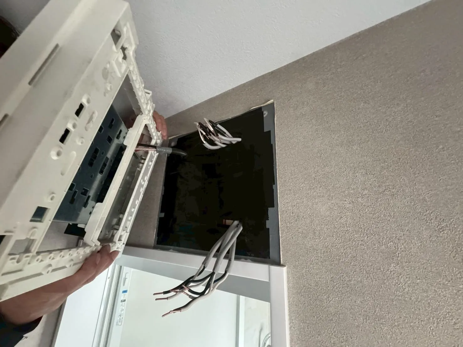 今回の工事では、コンセントや配電盤、スイッチ内部など電気設備に直接関わる作業が必要となるため、第二種電気工事士の資格を保有したスタッフが対応しました。これは非常に重要なポイントで、実際には無資格のまま分解・施工を行っている業者も少なくありません。