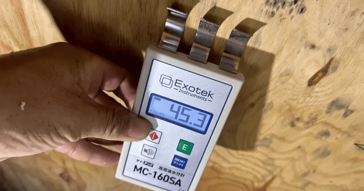 現場に急行し、木材の含水率を測定。なぜカビが生えたのか(乾燥不足か、外部侵入か)の原因を特定します。